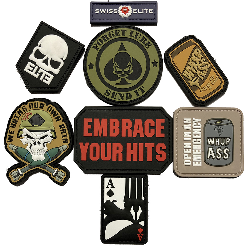 PVC patches are molded out of soft plastic and can be customized according to personal preference,which is a type of plastic with the same feeling as rubber. Durable and eye-catching, PVC is a softer type of plastic, and it is a standard replacement of rubber, especially when making patches.